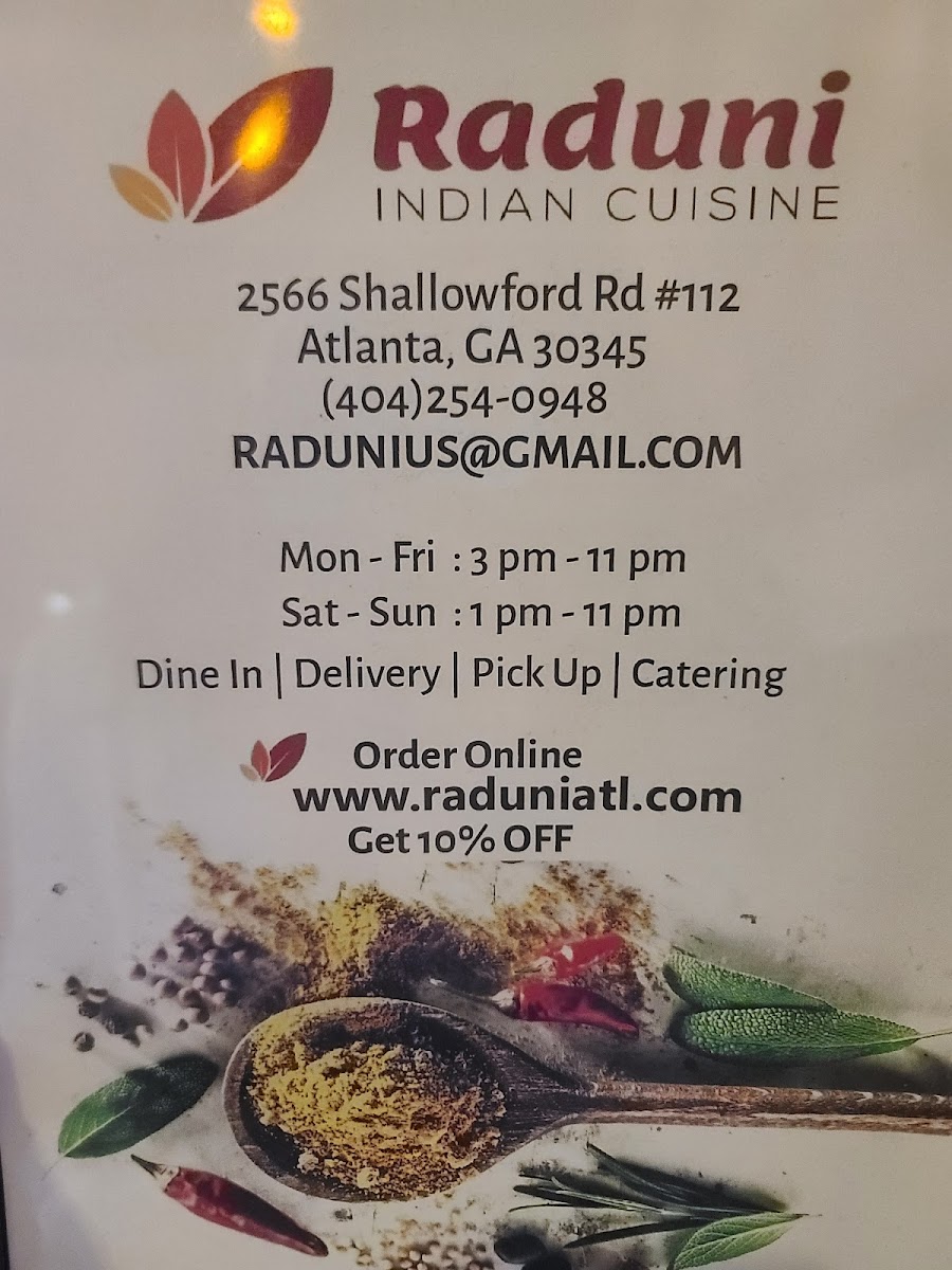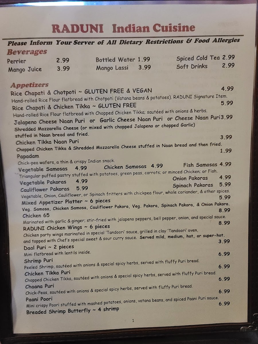 The overall feel of the menu aligns well with the welcoming environment of Raduni, where meals are enjoyed thoughtfully, and the focus is on savoring each carefully crafted dish. This menu suits both those familiar with South Asian flavors and newcomers eager to explore a balanced variety of tastes.