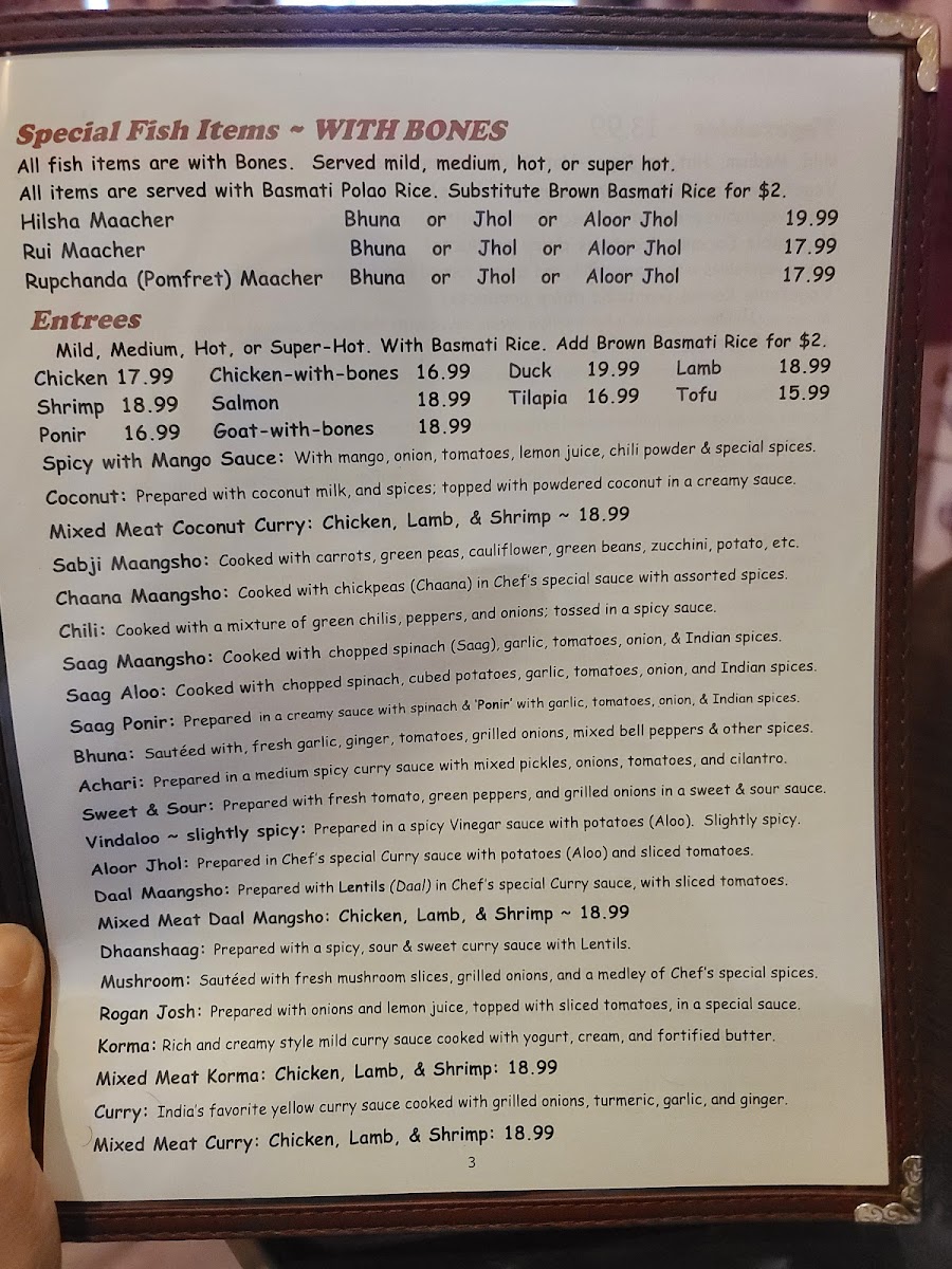 Raduni Indian Bangladeshi Cuisine Menu